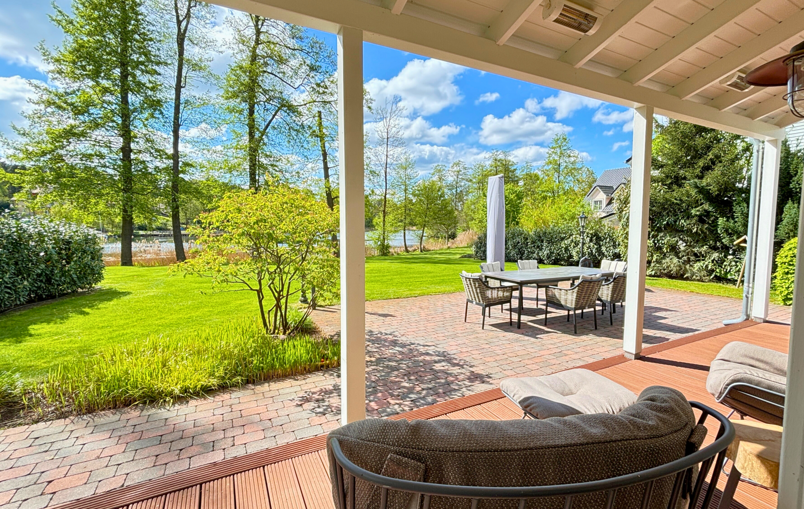 + überdachte, großzügige Terrasse mit idyllischem, ungetrübtem Seeblick