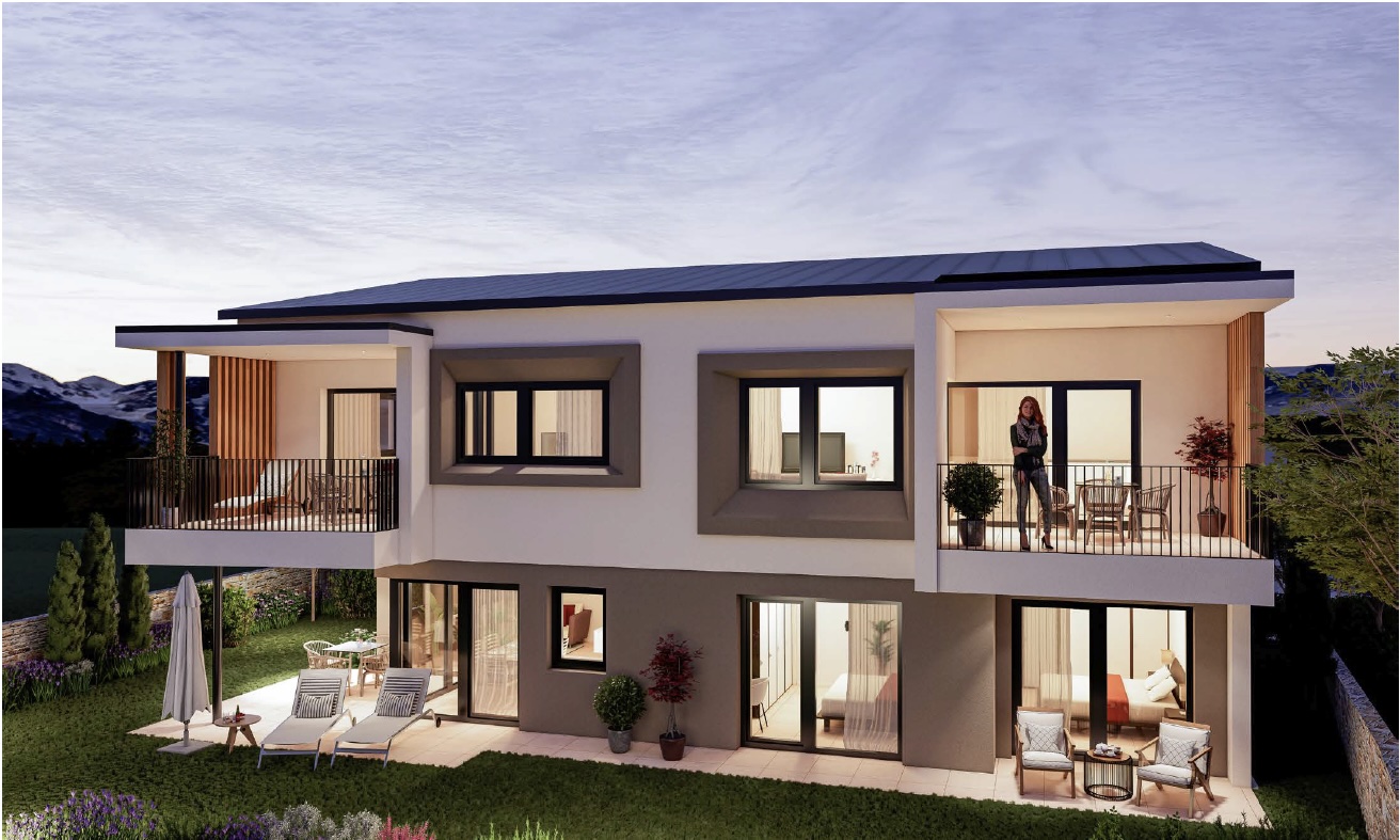 Es entstehen 2 Häuser in modernster Bauweise, dennoch traditionell mit insgesamt 11 Wohnungen. Jede Wohnung hat mindestens eine Sonnenterrasse, unbeschreiblich schönen Blick und eine super Ausstattung im Klima Haus A.