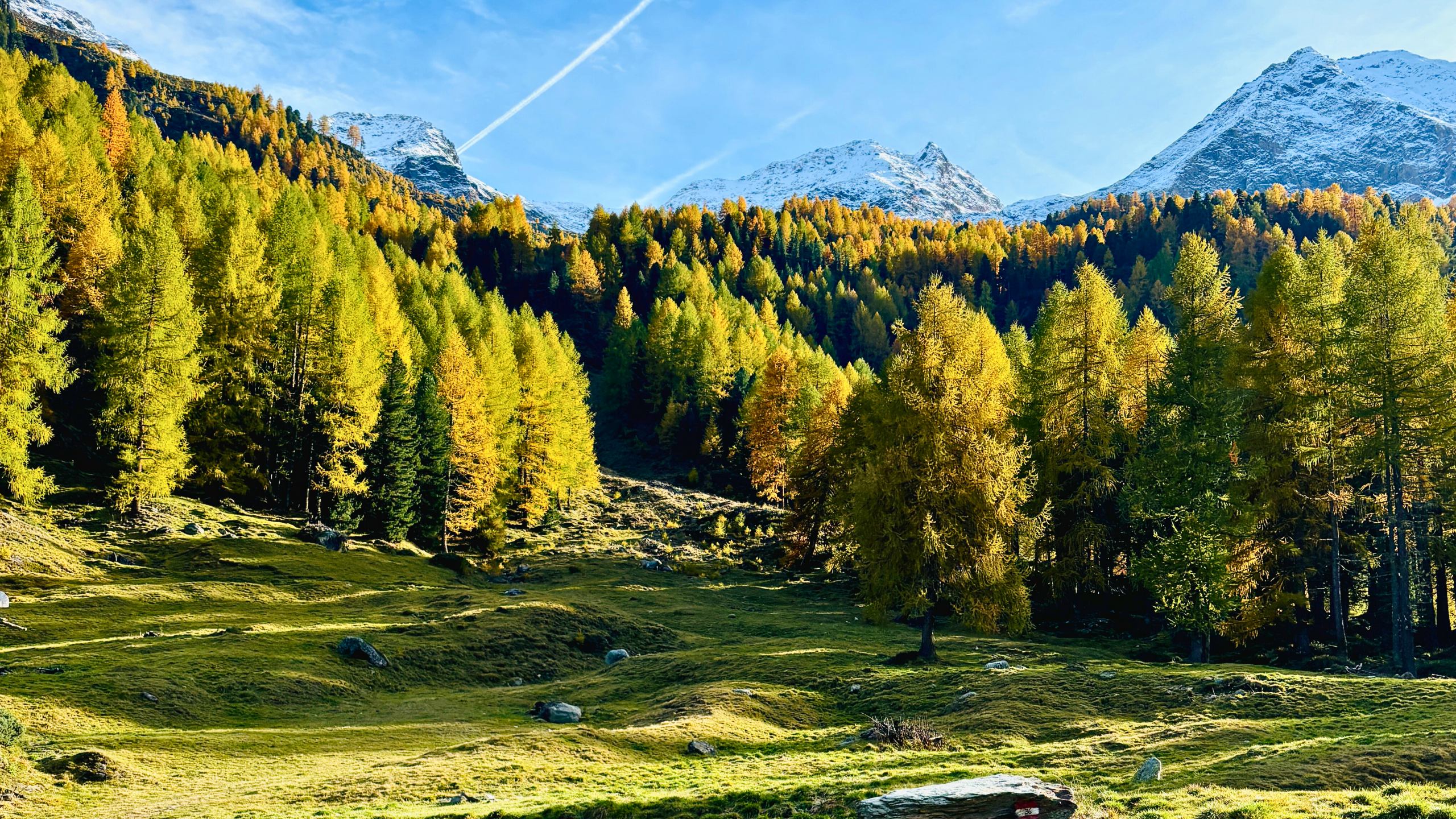 Das Martelltal, eines der ursprünglichsten Seitentäler des Vinschgaus, zieht sich von Goldrain im Haupttal bis zu den Gletschern der Ortlergruppe hinauf. Der Fluss Plima, der das Tal durchzieht, entspringt hoch oben im Hintermartell und bahnt sich seinen Weg durch dichte Nadelwälder, tiefe Schluchten und saftige Almwiesen.